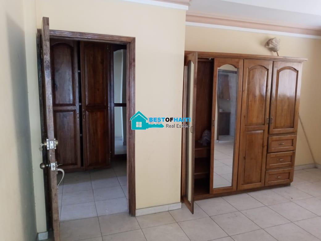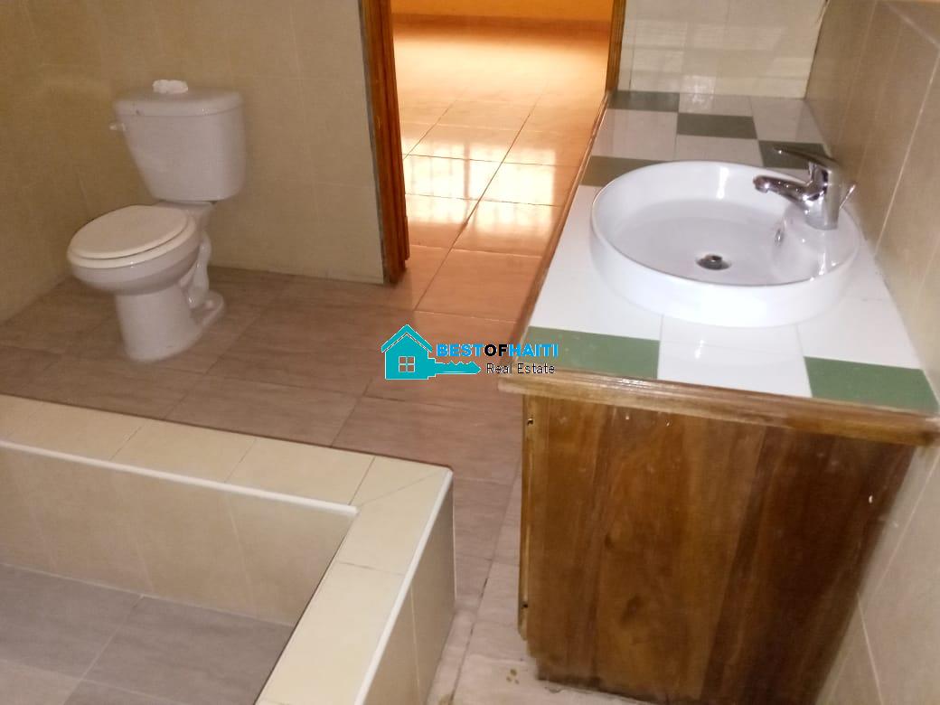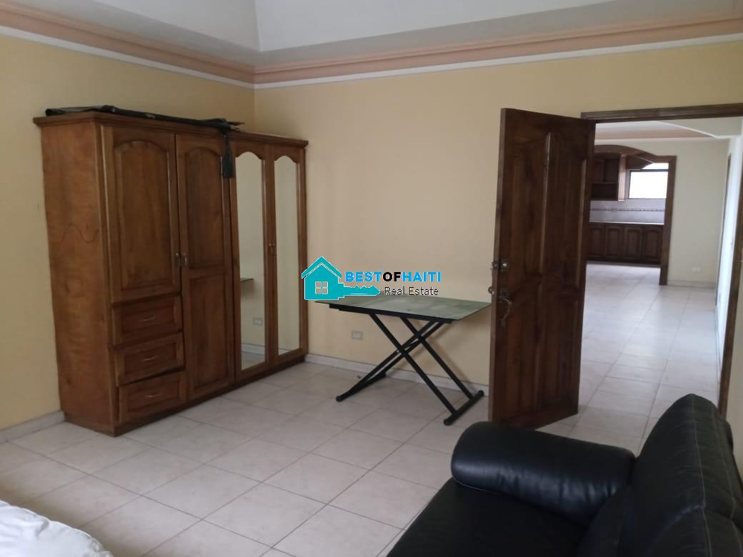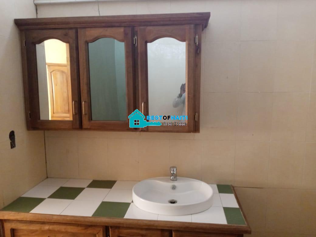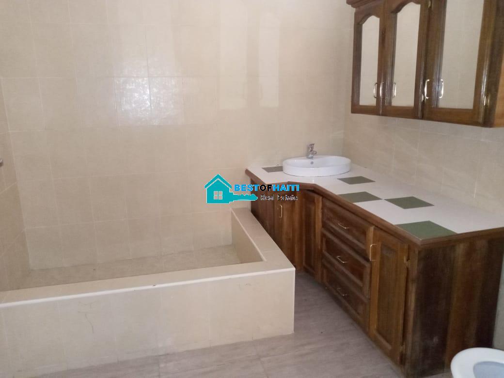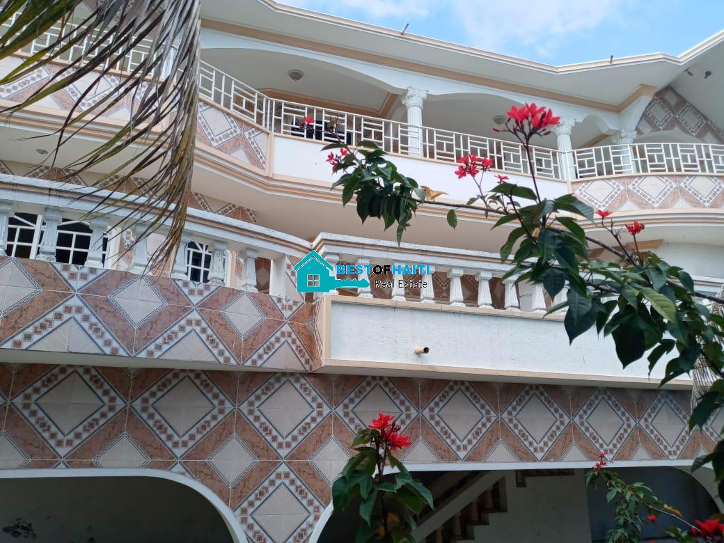 Elegant 7 bedrooms, 9 bathrooms, 2-story house for rent in Peguy Ville, Petion-Ville, Haiti. Each room comes with private bathroom. This property is perfect for a large family, an organization looking to house staff members or orphanage, offices or simply turned into a small hotel, bed & breakfast or guest house.