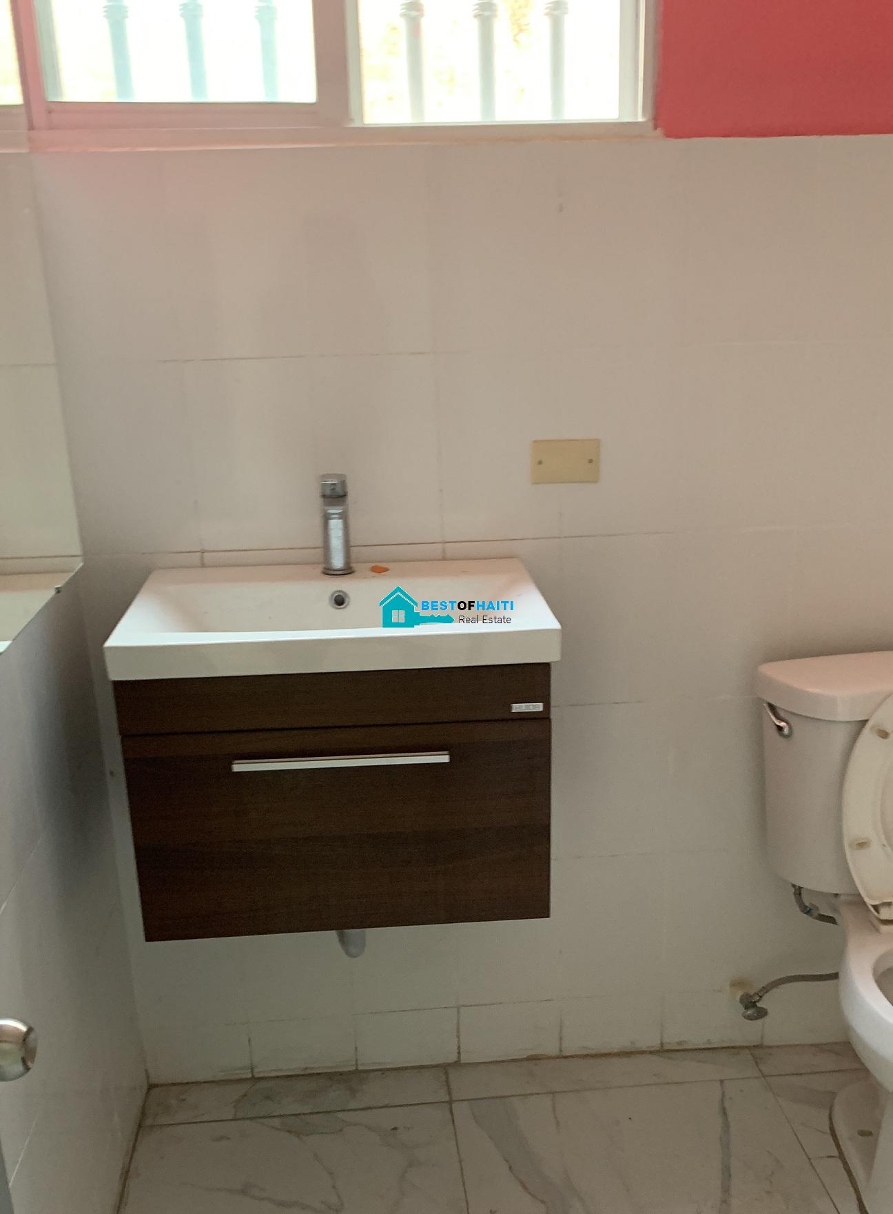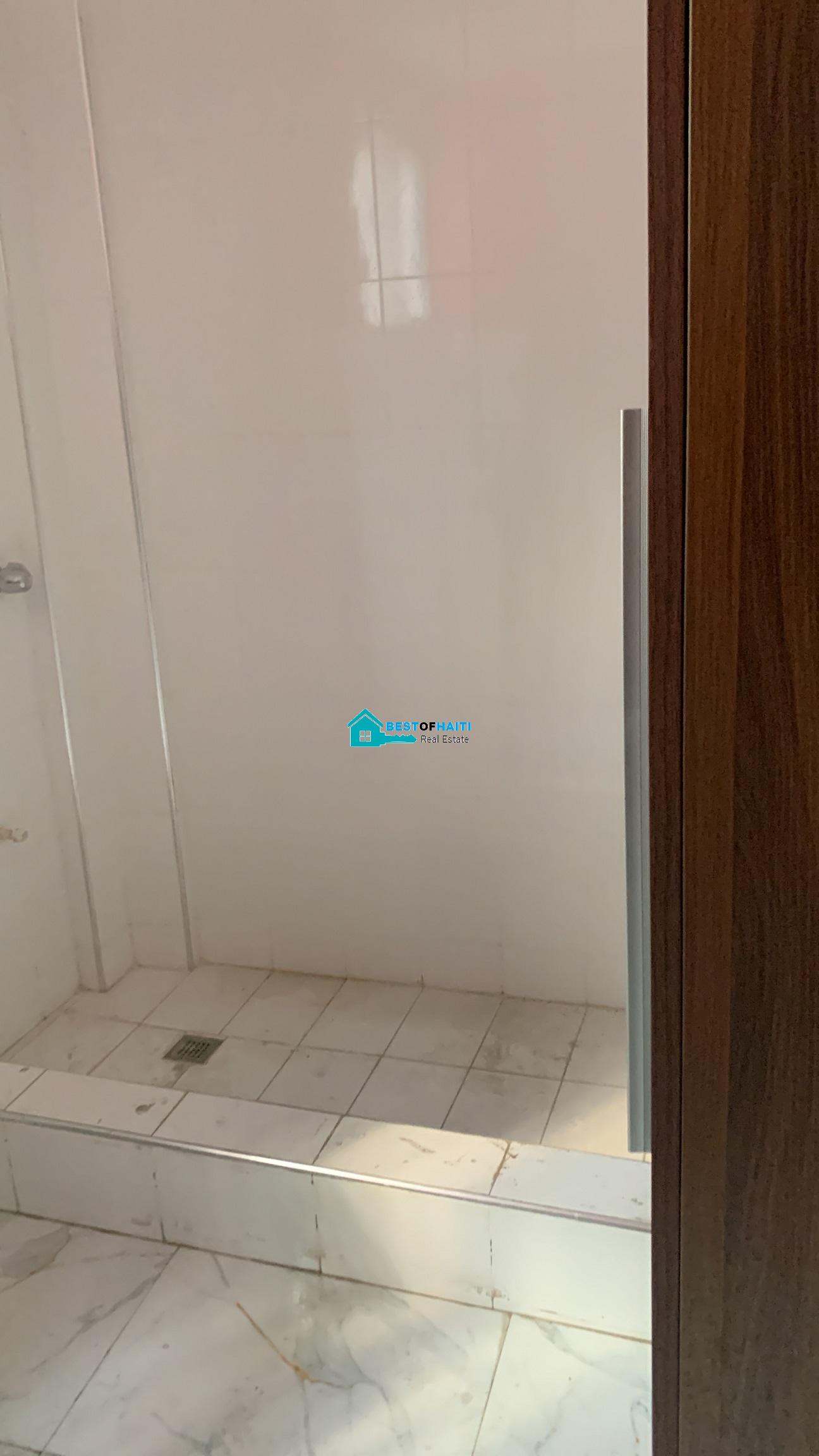 This luxurious 5 bedrooms, 6 baths unfurnished house for rent in Puits-Blain, Delmas, Haiti has a separate maid quarter with it’s own bathroom and kitchen. This is an exclusive community with an entry gate to the community and another entry gate to the house.