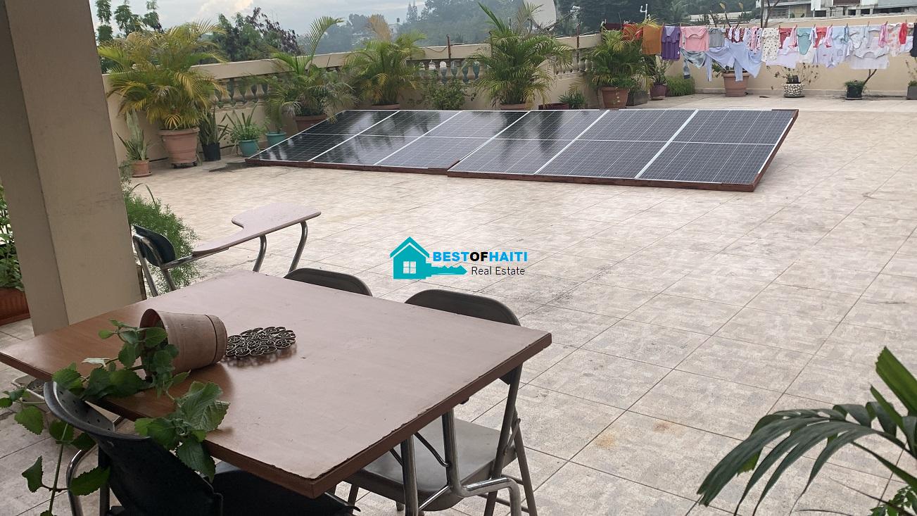 Recently built, clean, spacious, 2 & 3 bedroom apartments for rent at Bourdon (Reinbol), Petion-Ville, Haiti. Located in one of the safest areas, the 3 bedrooms unfurnished apartment comes with 2 specious bathrooms, large living and dining rooms. 2 bedrooms has 1 bath. Additionally, tenants get to enjoy a super nice rooftop with barbeque grill, chairs, tables and an amazing view of the Caribbean Ocean, trees, cities below and mountains.