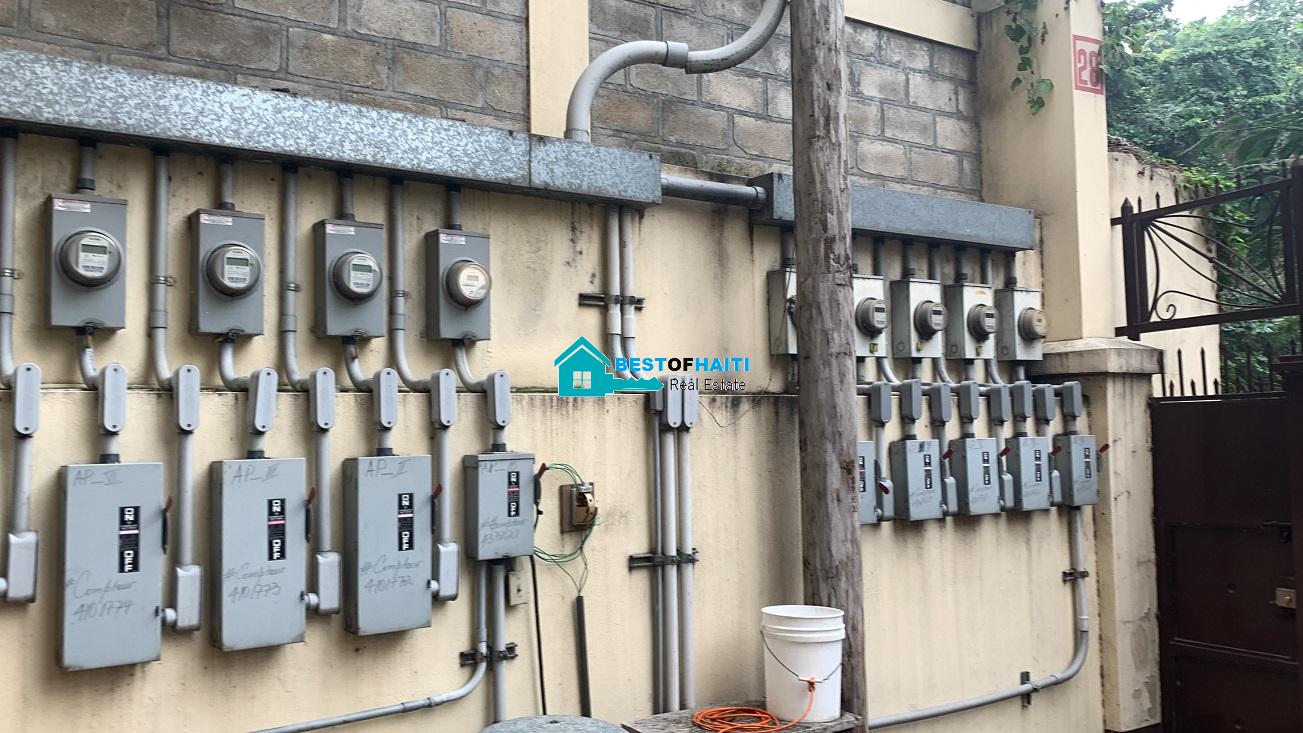 Moreover, each apartment contains 6-8 batteries with inverters of 1,500 watts. Tenants can add own solar panels on the rooftop. There also residents can wash clothes and hang them safely (even overnight). A Electricite D’Haiti (EDH) regulator is available for each apartment. View video here: https://youtu.be/g6rSgXH8DRY.
