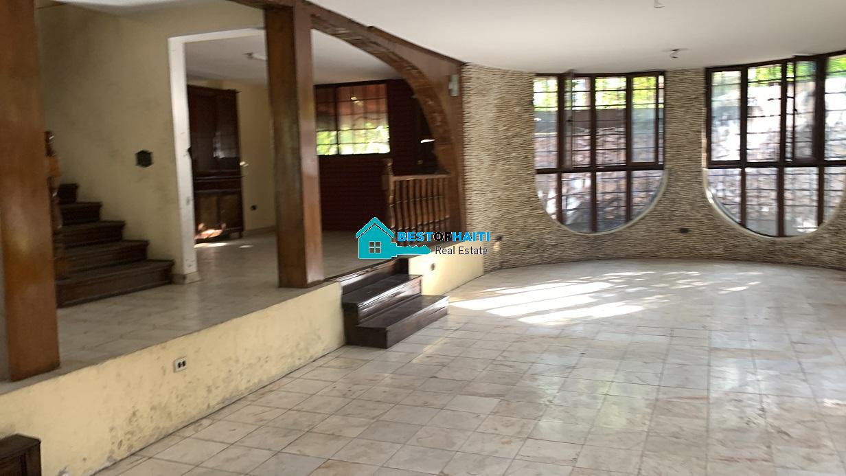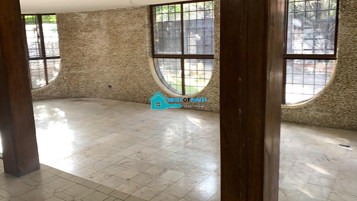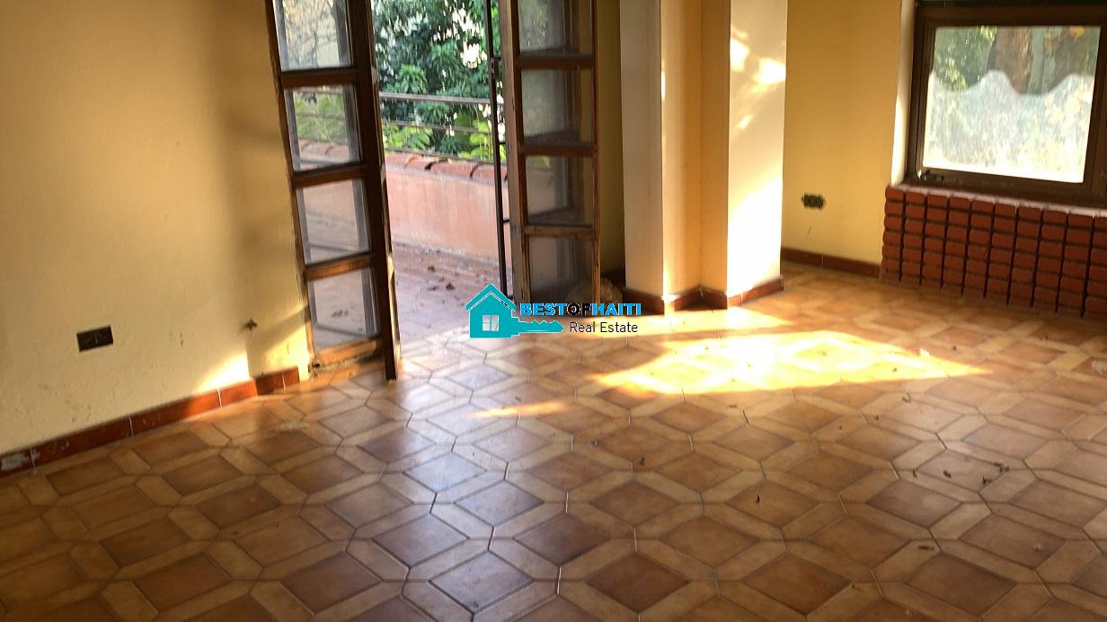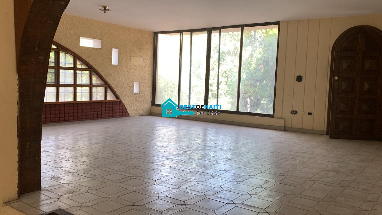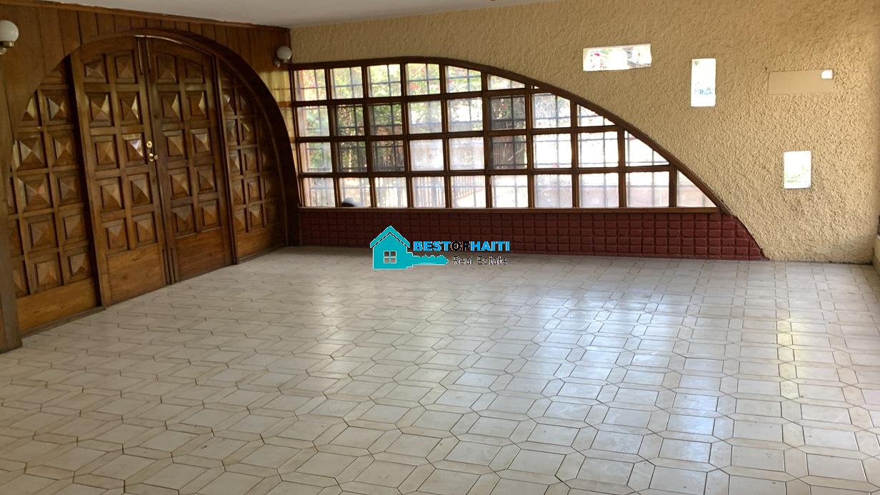 Big house for rent in Juvenat (Karibe Hotel area), Petion-Ville, Haiti. Property is super large with 5 spacious bedrooms, 6 bathrooms, super grand living/dining rooms that renter can use as conference room. Use it for either private resident or commercial property such as: office, warehouse/storage space, multi-family home, commercial business or more. The house can be divided into office rooms.