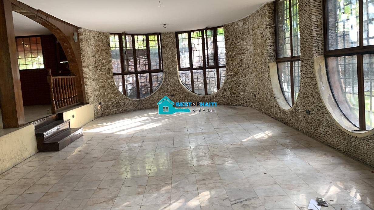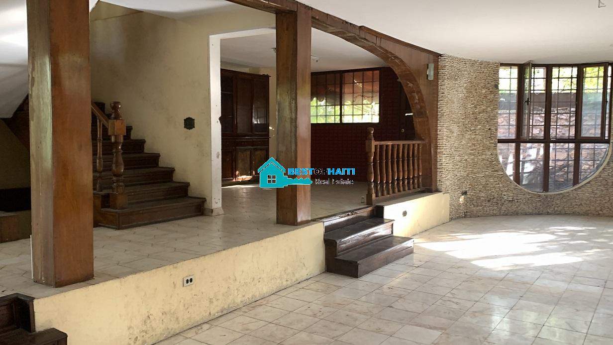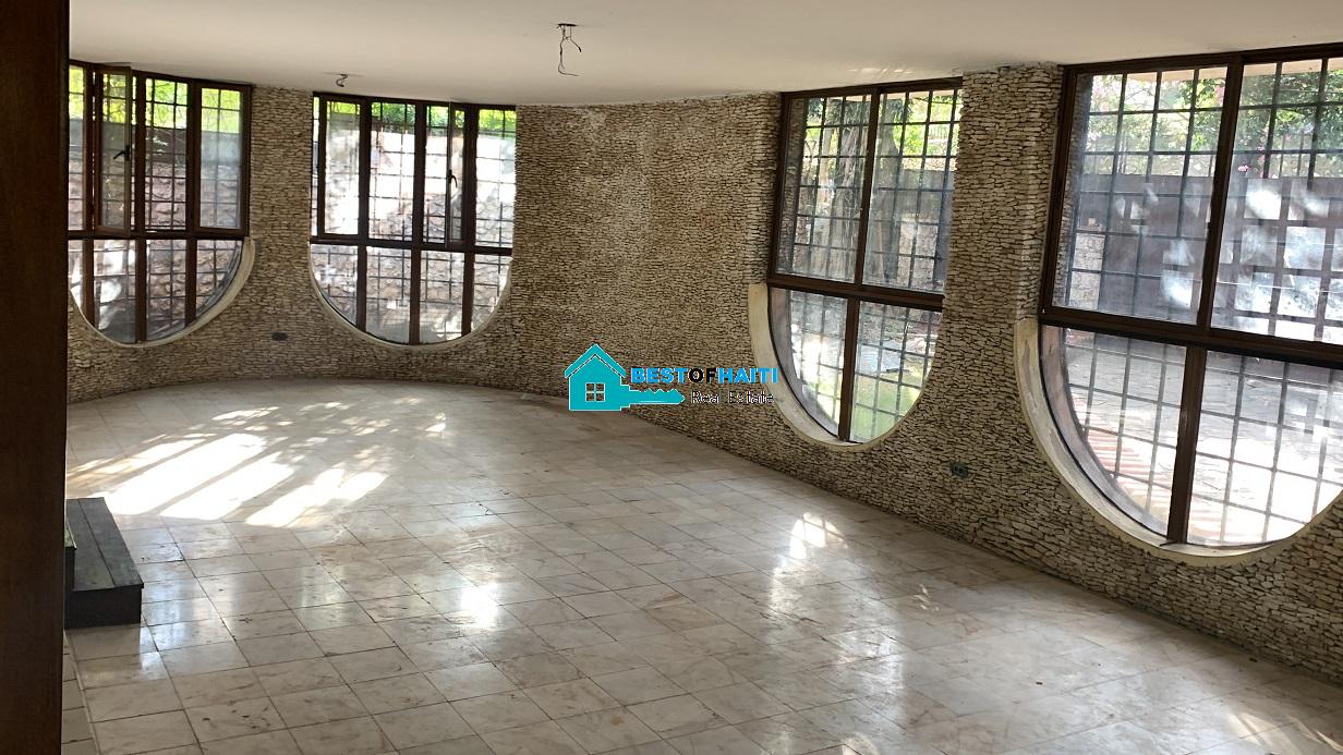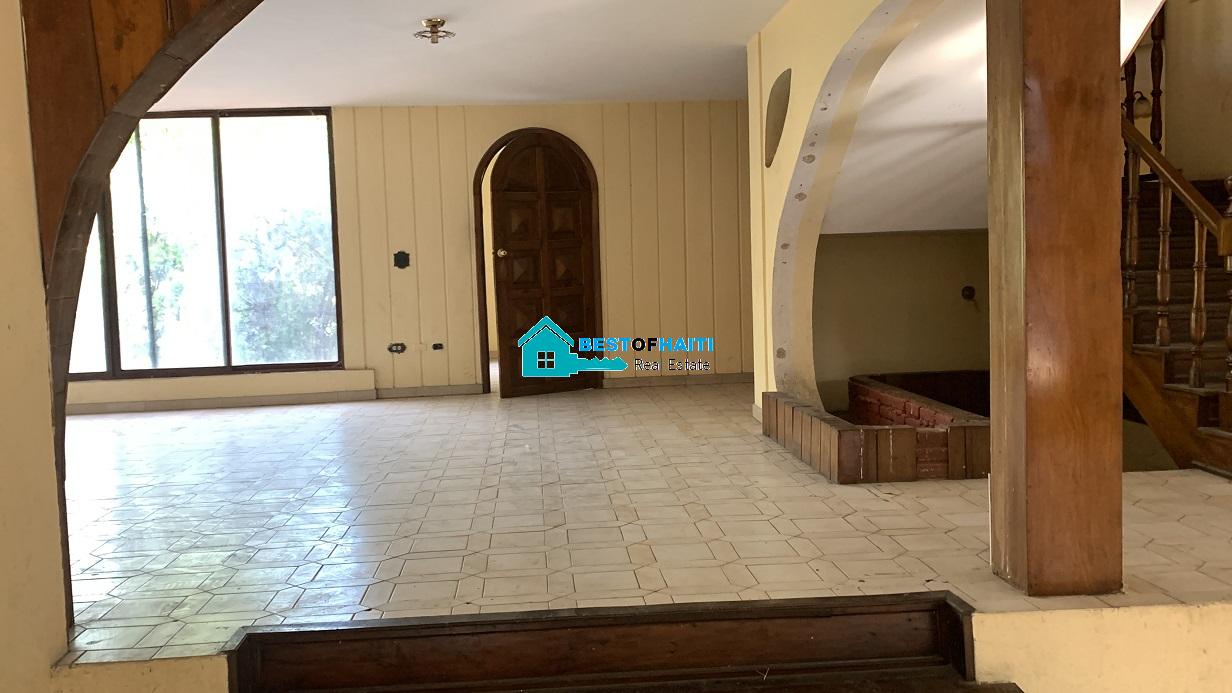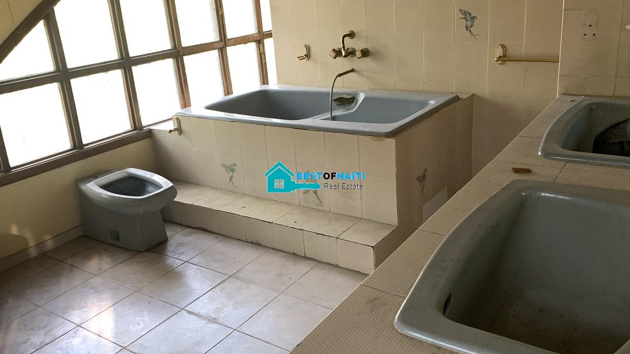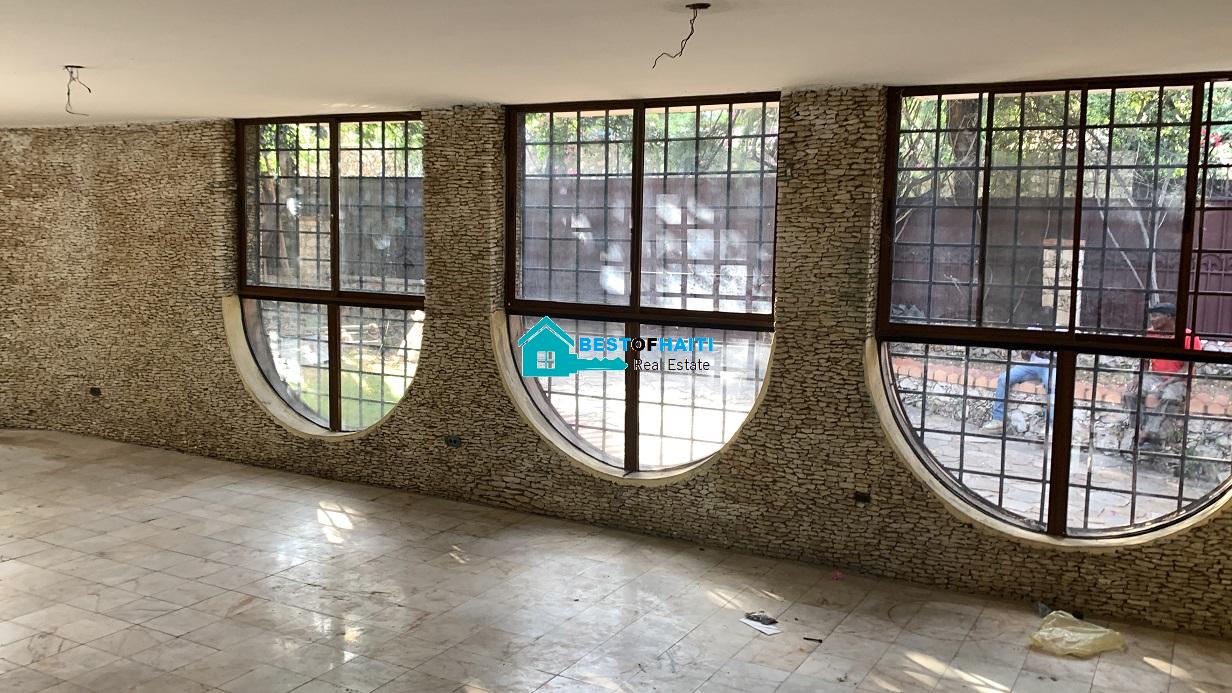 Big house for rent in Juvenat (Karibe Hotel area), Petion-Ville, Haiti. Property is super large with 5 spacious bedrooms, 6 bathrooms, super grand living/dining rooms that renter can use as conference room. Use it for either private resident or commercial property such as: office, warehouse/storage space, multi-family home, commercial business or more. The house can be divided into office rooms.