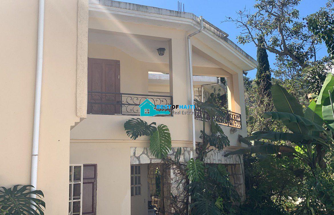 Spacious, Two-Story, Affordable House for Sale in Kenscoff (City Center), Port-au-Prince, Haiti – 3 Bedrooms, 2 /12 Baths, Gated/Fenced, 13+ Parking, Lots of Garden, Trees, Veggies