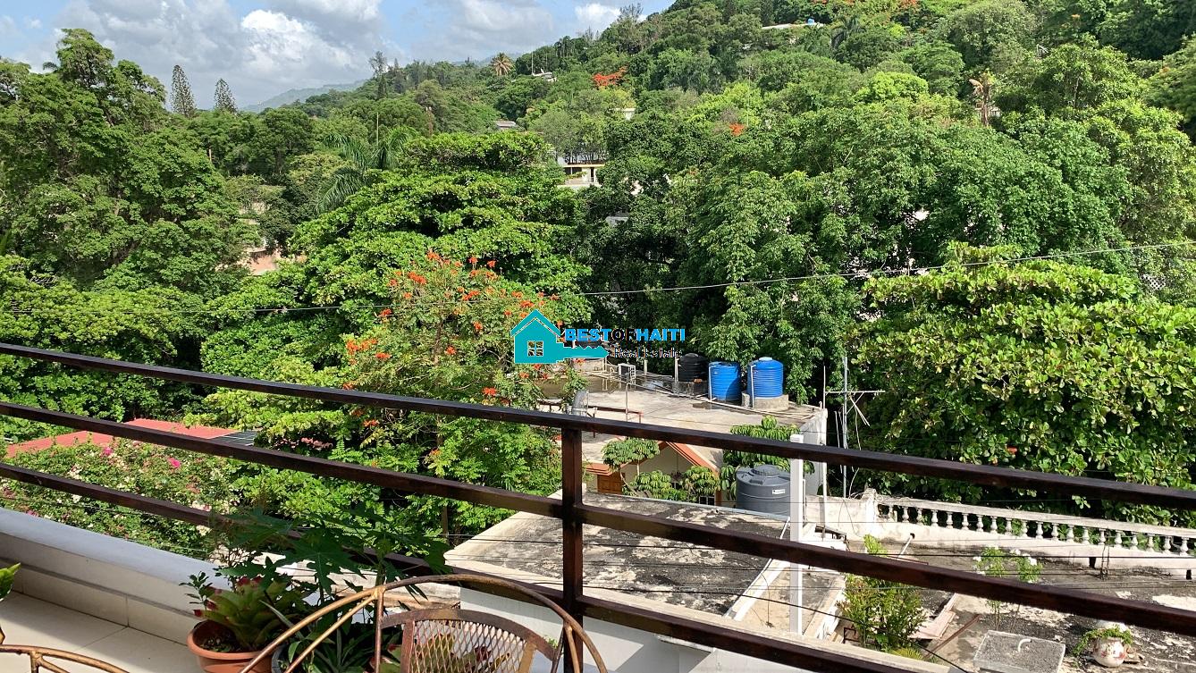 Furthermore, there is a nice lobby to sit and enjoy some of the most gorgeous views of Petion-Ville’s greeneries and environment. Solar electricity included and Electricite D’Haiti is frequent due to the proximity of the Prime Minister’s main office.