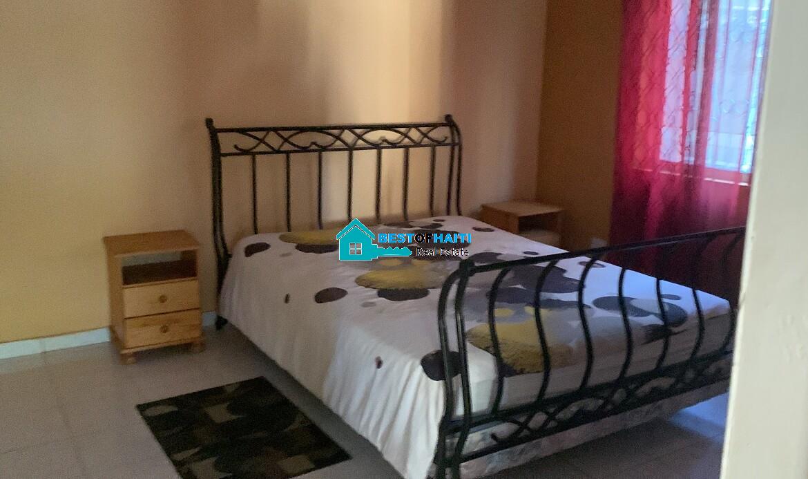 Spacious 1 bedroom, 1 bath, everything included, fully furnished, luxury apartment for rent in Peguy-Ville, Petionville, Haiti. Located in a super quiet, secure and private residential neighborhood, each tenant gets 1 parking space in the duplex, places for tenants to relax, gorgeous mountain, Caribbean Ocean and cities below views.
