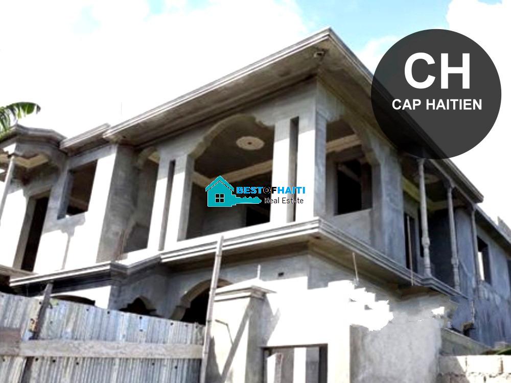 Superb, unfinished house for sale in Cap-Haitian (Mombin Lataille), aiti. Located in a highly demanded residential area, the property sits on 480 square meters worth of land, well-appointed courtyard with green corners that induce tranquility: It includes: