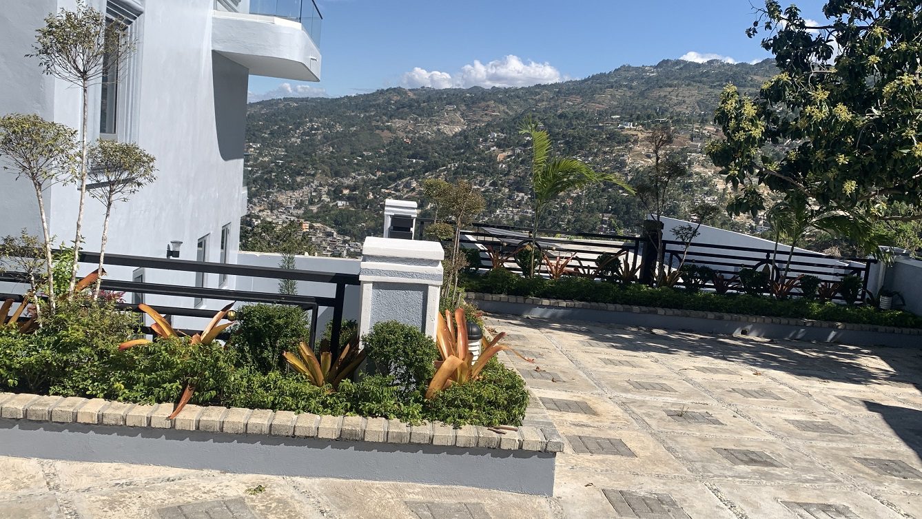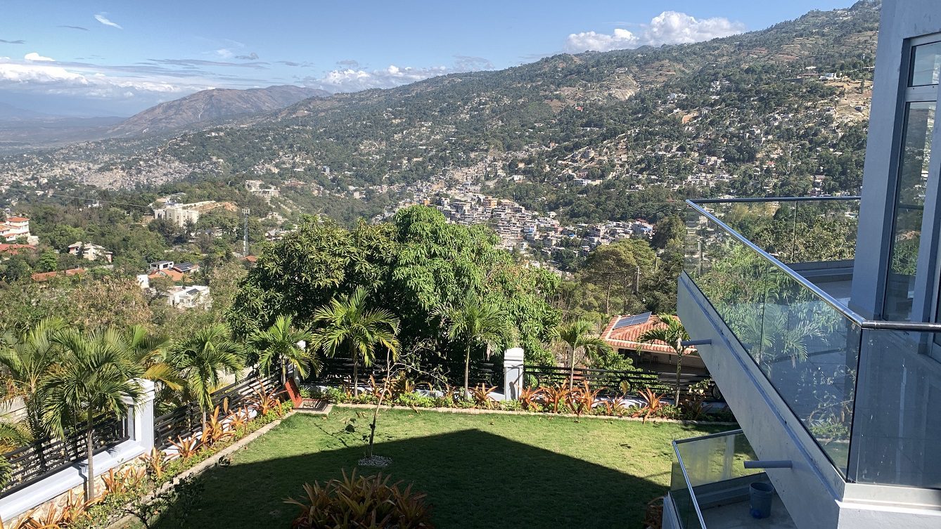 It’s secured with high walls/fences and a muscular gate. It sits on a private estate with a single entrance, exit and breathtaking and dominating views of mountain tops, Caribbean Ocean/Sea, and cities below. It’s one of the most beautiful, luxurious, and expensive homes in one of Petion-Ville’s riches suburb or neighborhoods.