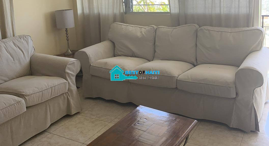 Luxury apartment for rent in Morne Calvaire, Petion-Ville, Haiti. Located inside a secure and private apartment complex. Each available apartment has 2 bedrooms, 2 bathrooms, living room, and dining room.