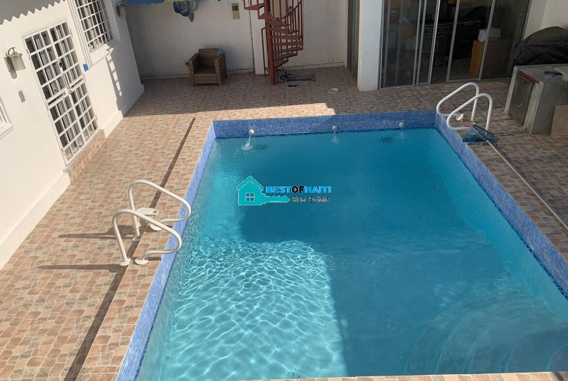 Stunning, Fully Furnished OR Unfurnished, Luxurious House for Rent in Vivy Mitchell, Petion-Ville, Haiti – 24/7 Solar Electricity, Swimming Pool, Servant & Security Quarters, Quiet Area