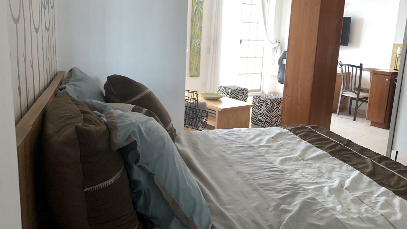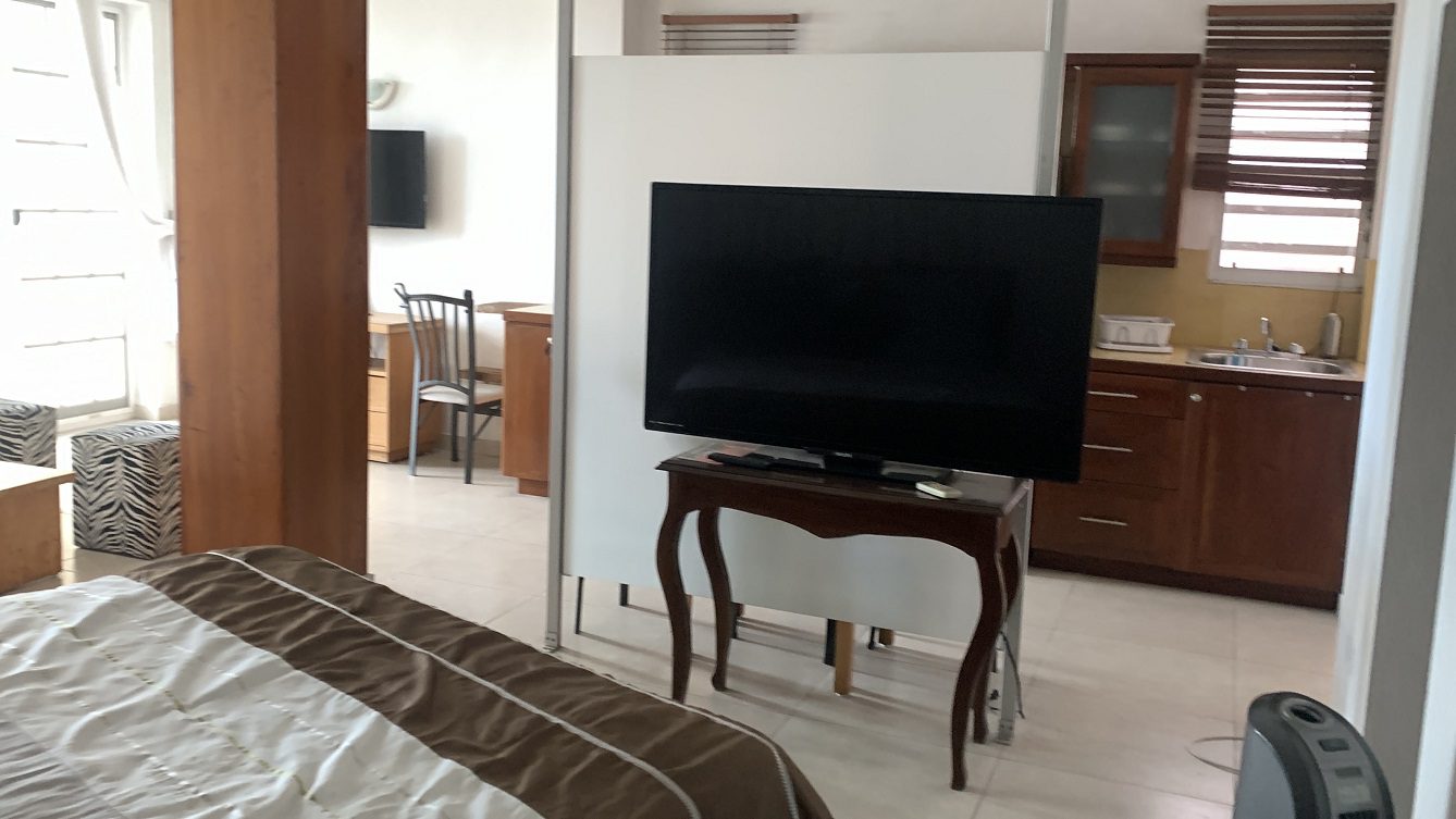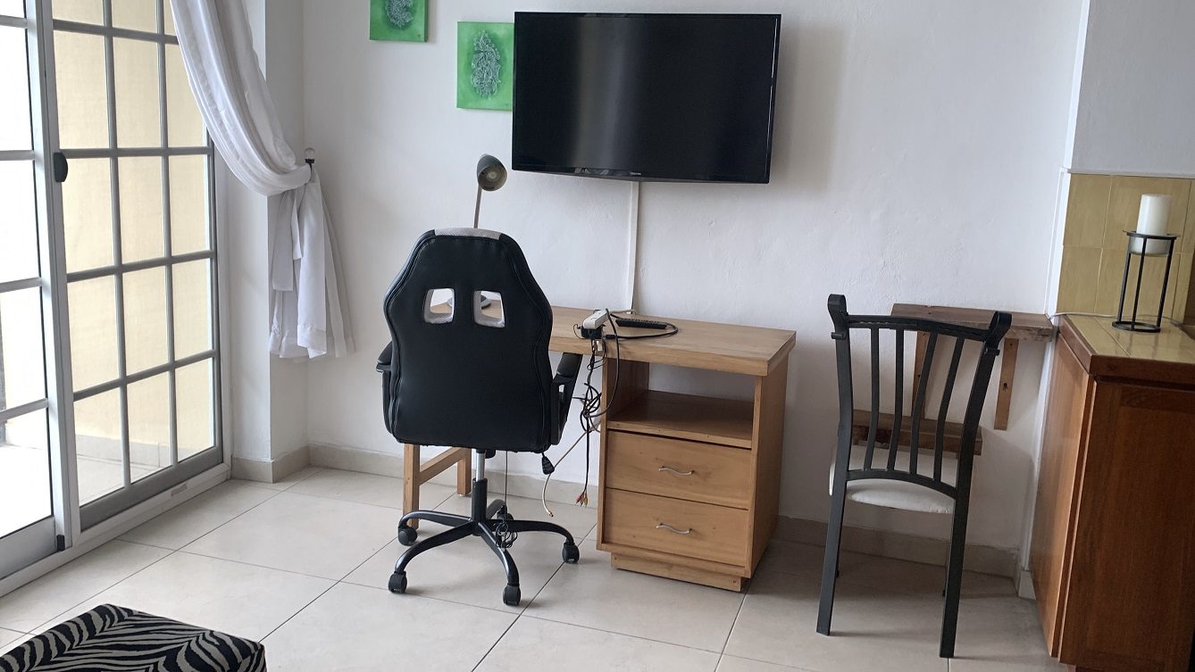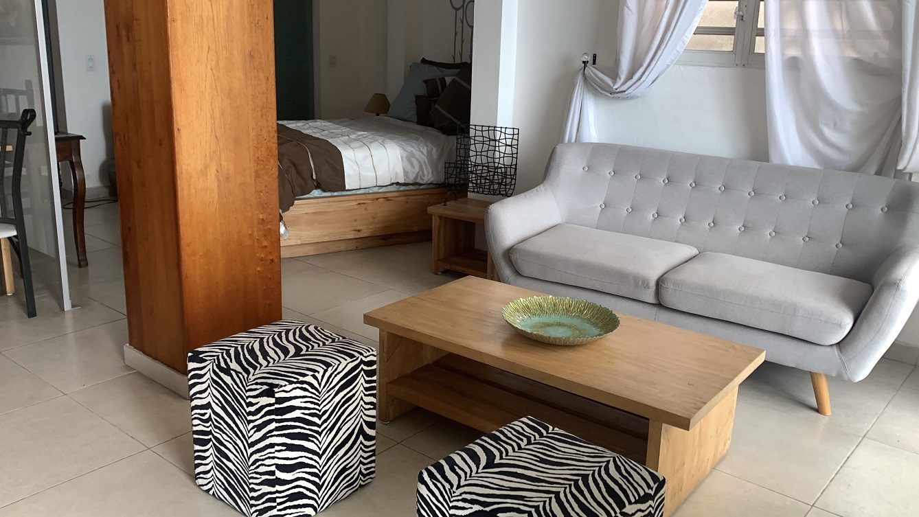 Luxury furnished studio apartment for rent in Morne Calvaire, Petion-Ville, Haiti. Located in the lower upscale part of the mountainous city, the spacious, modern, and luxurious flat INCLUDES EVERYTHING: 24/7 electricity, air conditioner units (A/C), Wi-Fi Internet, cable television (TV), heater, and office area.