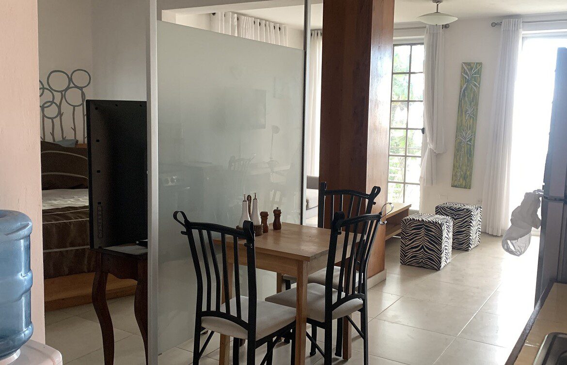 Luxury Furnished Studio Apartment for Rent in Morne Calvaire (Lower), Petion-Ville, Haiti – EVERYTHING INCLUDED! 24/7 Electricity, Air Conditioner (A/C), Wifi Internet, Cable Television (TV), Lush Green Garden, Comfortable Seating Areas, Stunning Mountain and City Views