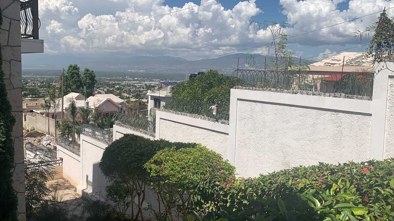 Luxury house for rent in Vivy Mitchell, Petion-Ville, Haiti. The multi-family, two-unit home has 4 bedrooms, 5 bathrooms, 2 modern kitchens, 2 living rooms, 2 dining rooms, and 2 water reservoirs. Additionally, each bedroom comes with a huge balcony with gorgeous mountain views.