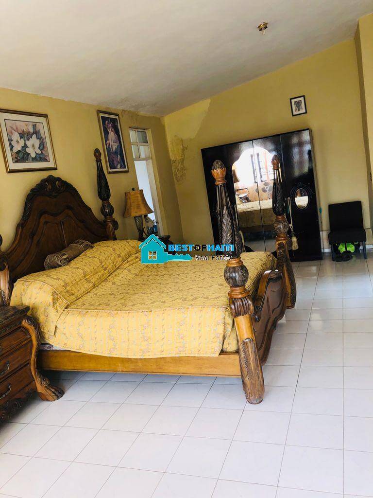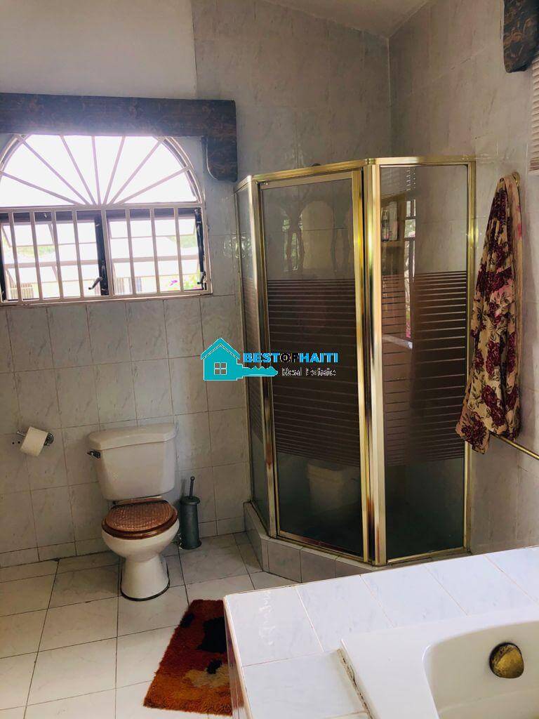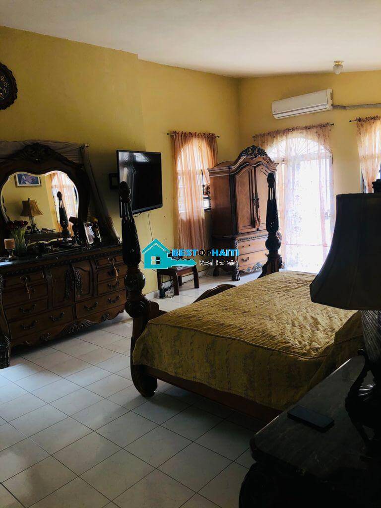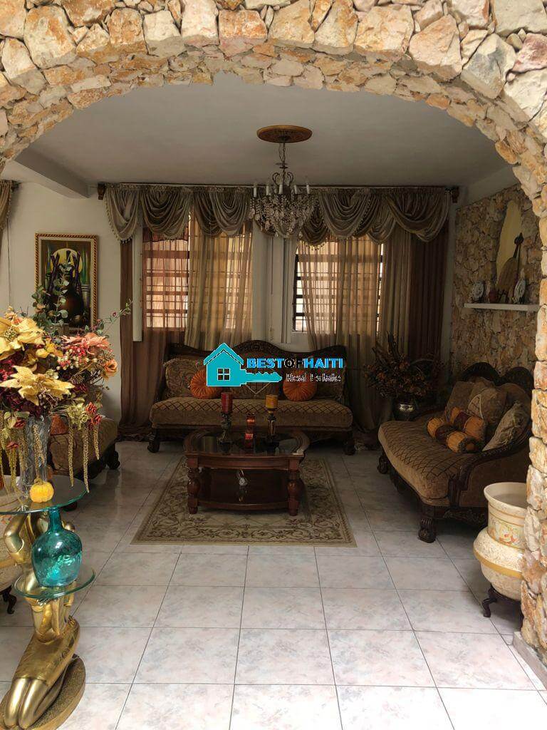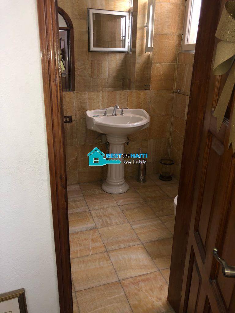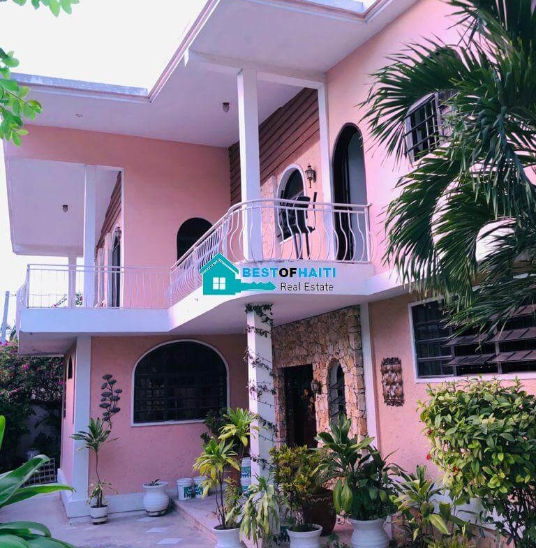 Luxury, beautiful, two-story home for sale in Puits-Blain, Petion-Ville, Haiti. This gorgeous house comes with 6 bedrooms, 3 bathrooms, 2 dining rooms, 1 living room, 1 maid quarter and parking for 4+ cars.