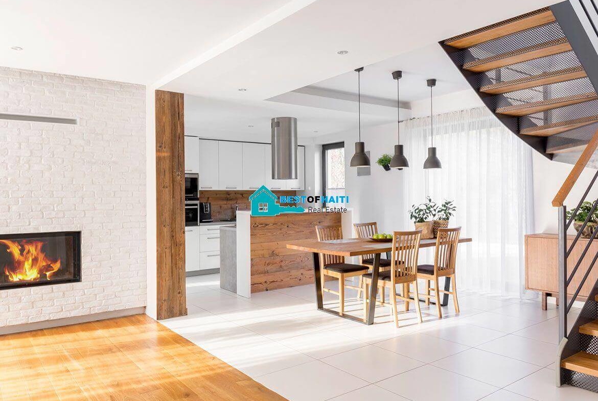 All windows are screened with iron bars. Maid quarter features large kitchen, 2 bedrooms, and 1 bath. Modern and light apartment located in Anse-à-Galets, La Gonave.