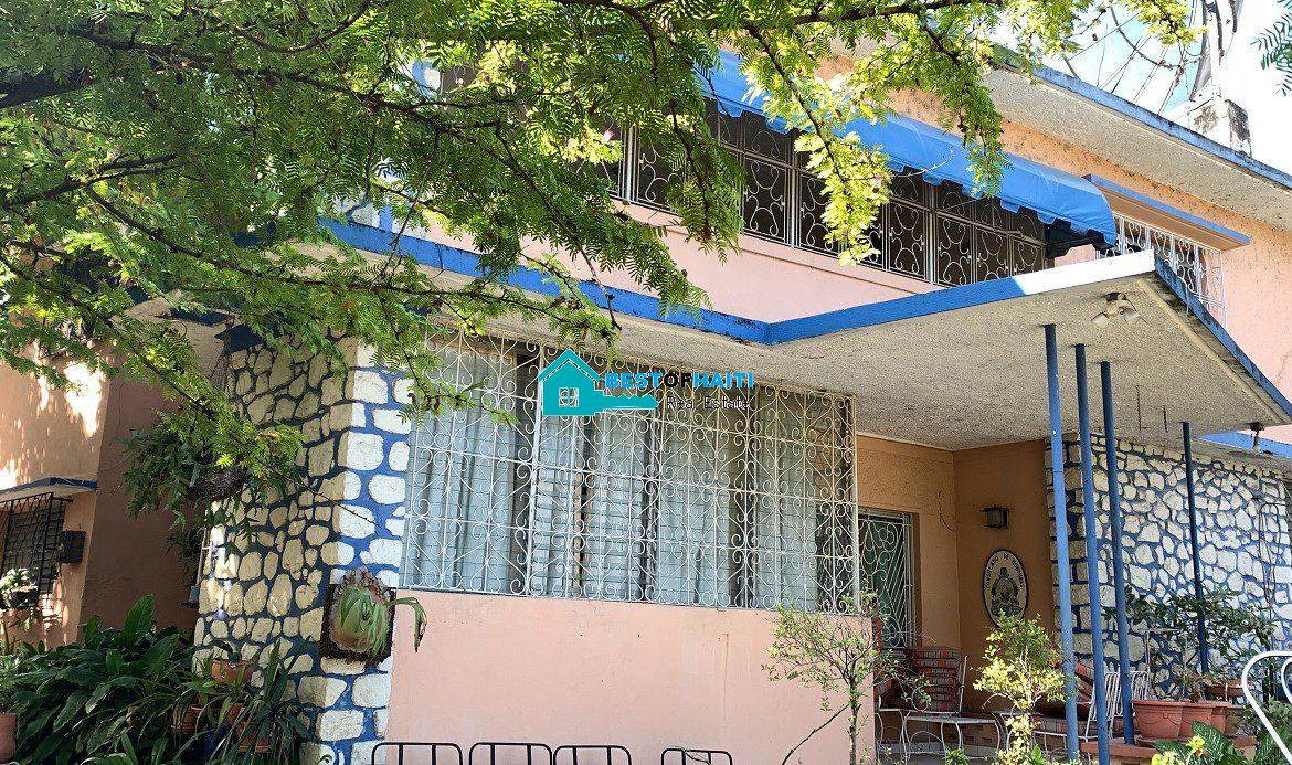 REDUCED! Nice, Two-Story, Affordable, 6 Bedrooms, 4 Baths House for Sale in Petion-Ville (City Center), Haiti – Private Area, Gated/Fenced, Brick Front, Lots of Flowers, Veggies, Trees