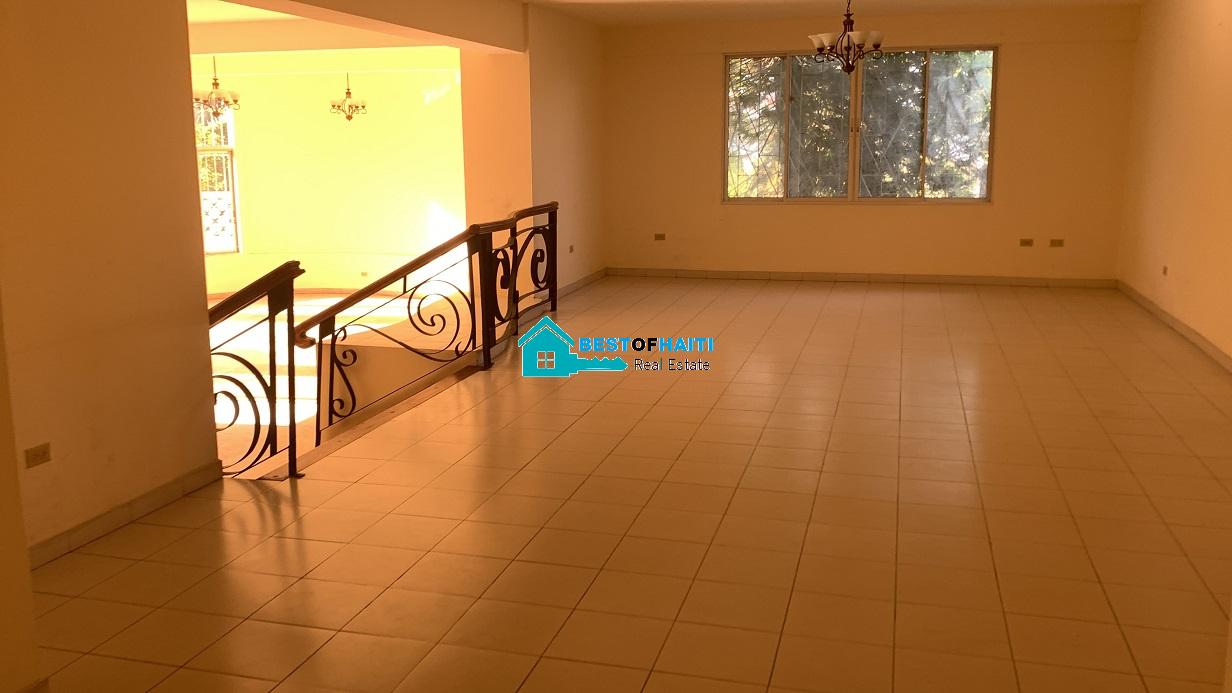 House for rent in Pacot, Port-au-Prince, Haiti. Renters may use property as a grand residential house (palace type) or commercial / business office. Near renowned international resort, Bamboo, the property is located in a cult-de-sac & secure area with 100% paved roads and very quiet. The area is mixed residential & commercial. This is ready to move in now. It’s super clean and painted.