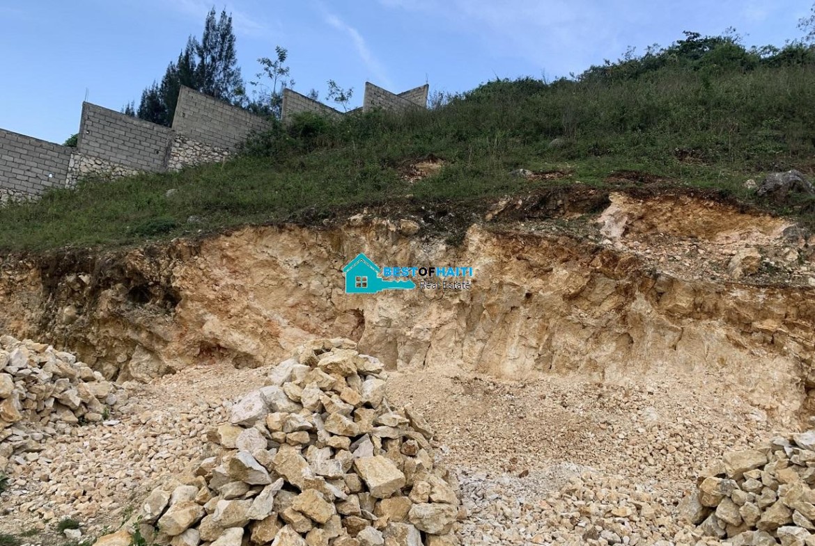 The land for sale in Port-au-Prince, Haiti is fenced on three sides, rocky, rectangular in shape and overlooking the road is below. There are several mansions belonging to wealthy businessmen/women and politicians in the area. The area is upcoming and scarcely built. See video of land here: https://youtu.be/AKgE-1s45xI