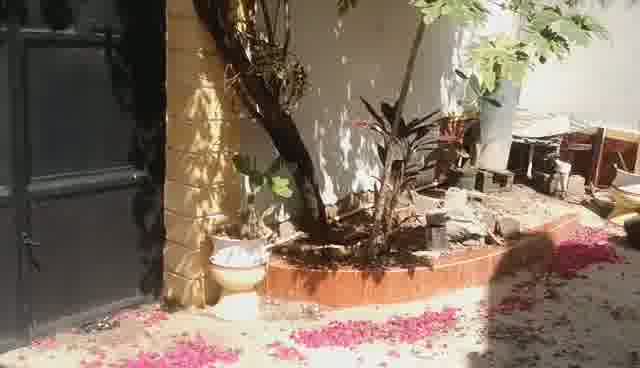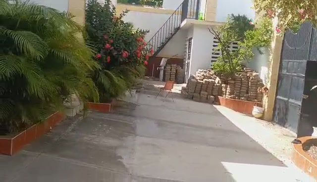 Additionally, there is a small security post attached to the fence for arm security guards. Also available is a covered garage that can hold 2 cars. Additional outdoor parking for 5+ vehicles on the courtyard. Front & back yards with tropical fruits, vegetables, and other trees.