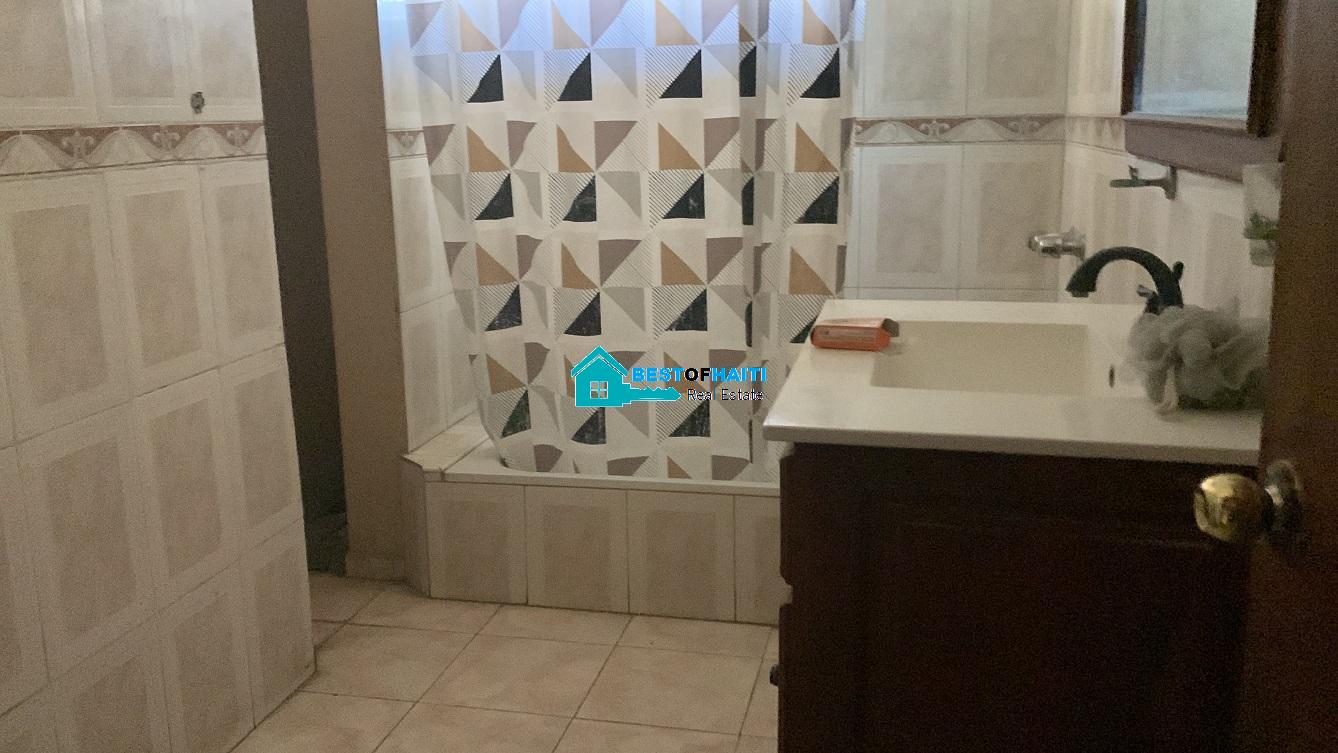 Spacious, secure, two-story house for rent in Tabarre 46, Port-au-Prince, Haiti. The solidly-built, two-story, multi-family home comes with 7 bedrooms, 3 bathrooms, walk-in closet and jacuzzi tub in master bedroom. Additionally, each floor has a living room and kitchen. Giving that the property has 2 floors, new tenants will enjoy the luxury of 2 kitchens & 2 living rooms.