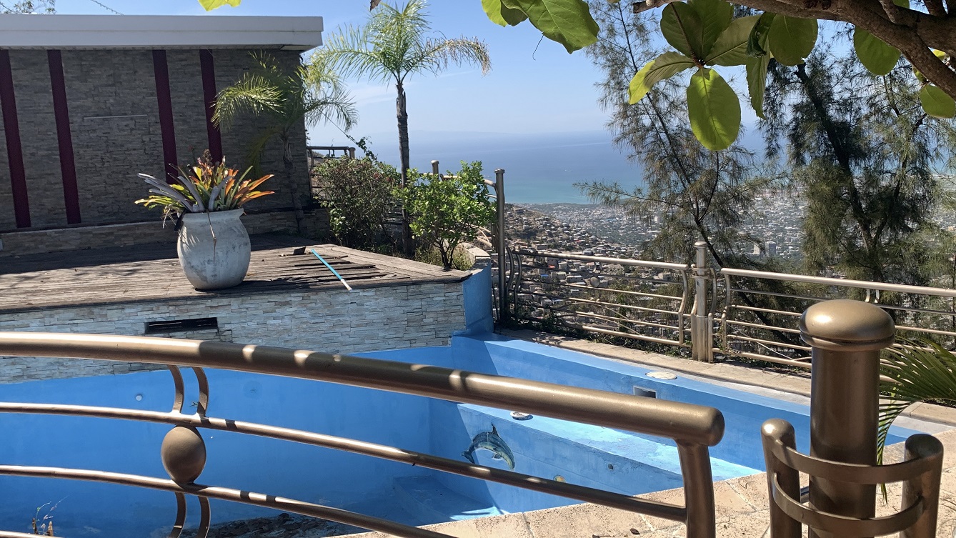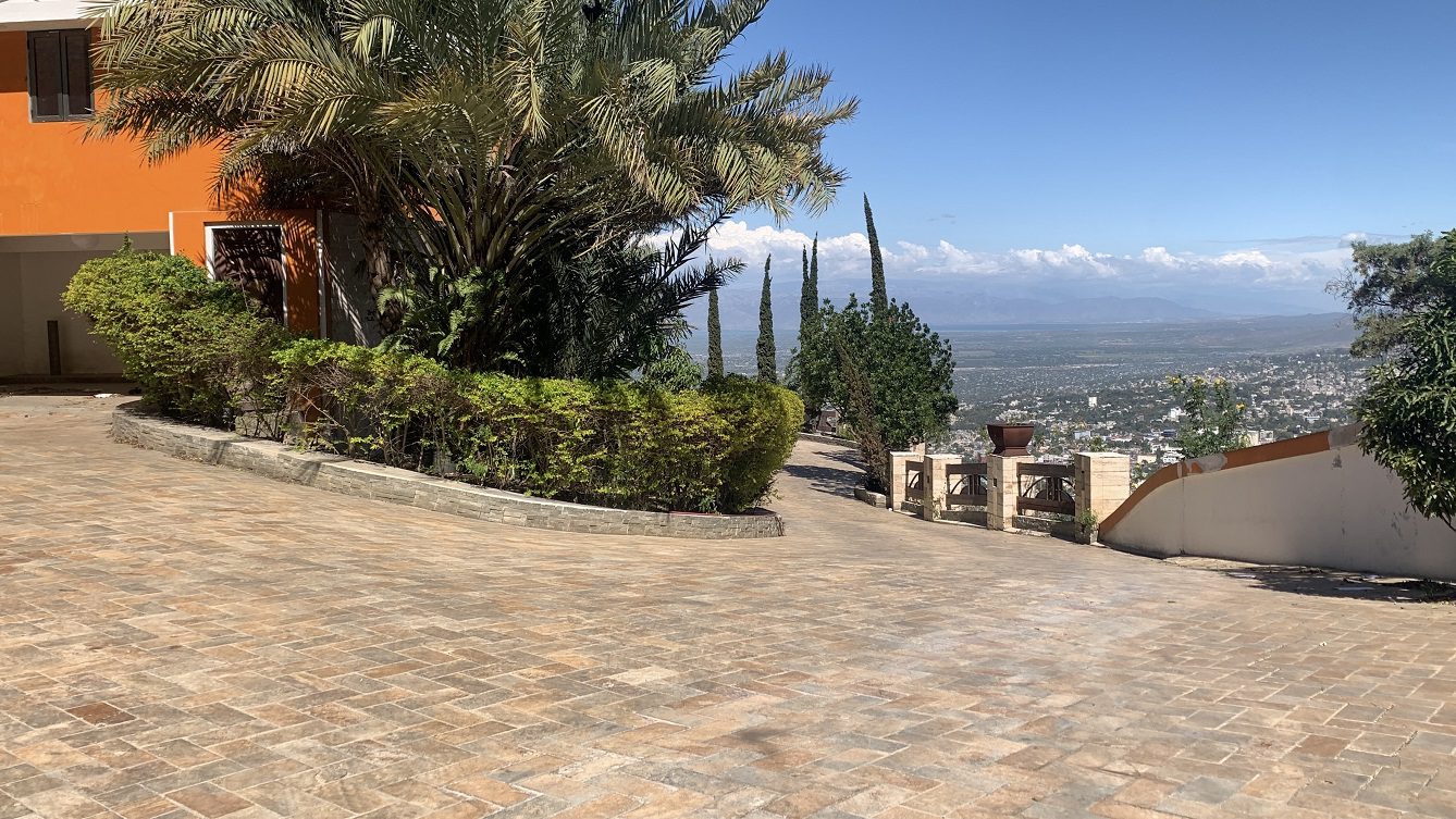 Besides, the property’s architecture is very unique. It’s secured with high walls/fences and a muscular gate. It sits on a private estate with a single entrance, exit and breathtaking and dominating views of mountain tops, Caribbean Ocean/Sea, and cities below. It’s one of the most beautiful, luxurious, and expensive homes in one of Petion-Ville’s riches suburb or neighborhoods.