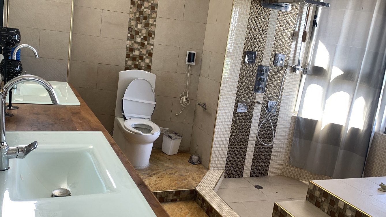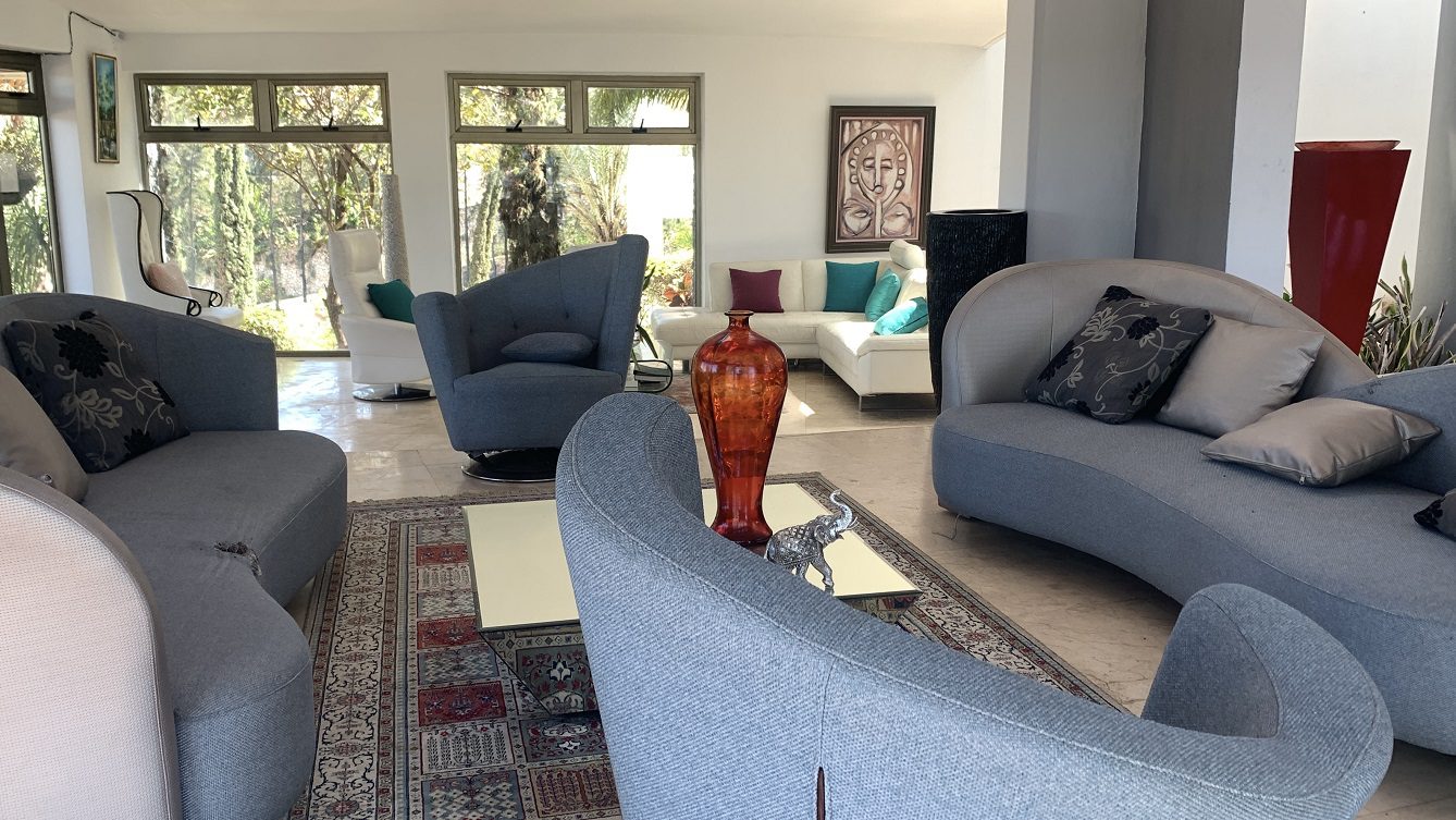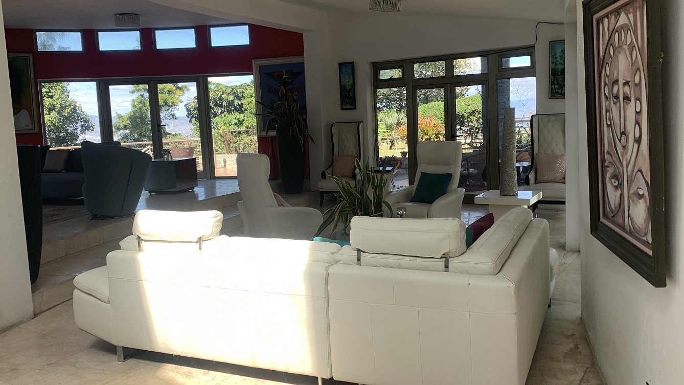 Ultra-luxury furnished mansion RENTAL in Morne Calvaire, Petion-Ville, Haiti. High in the mountain, the spectacular home or house estate comes with 5 specious bedrooms, 6 bathrooms, multiple living/dining rooms. Additionally, there are jacuzzi tubs, walk-in closets, 2 modern kitchens, contemporary furniture & appliances, a robust solar-power electricity system, commercial size power generator, and Electricite D’Haiti (EDH).